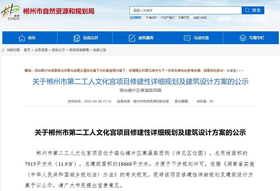 本次规划方案公示的是郴州市第二工人文化宫,是郴州市一项重要的民生工程。
