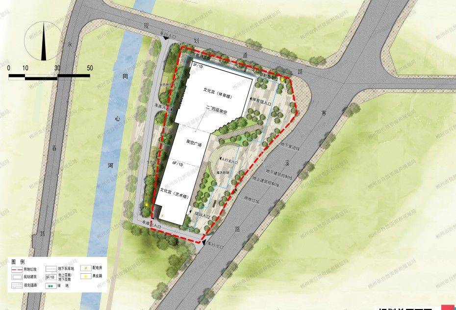郴州市第二工人文化宫项目位于骆仙铺片区,东接寒溪路,西、南紧靠同心河滨水风光带,北临城市支路。
