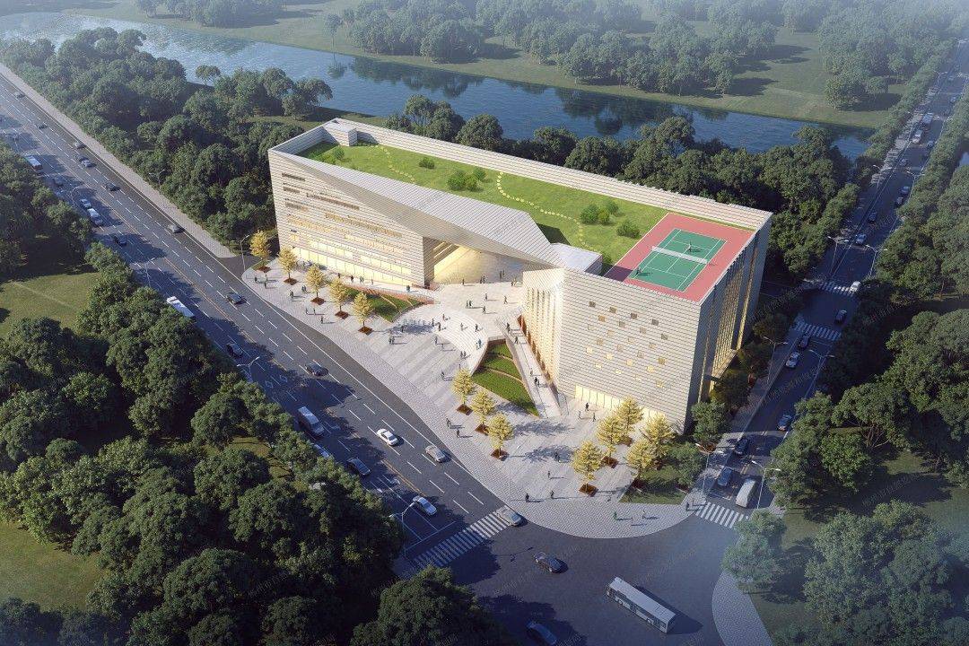 项目建设内容包含体育楼、艺术楼、架空广场、露天剧场,且规划地下车库、生态停车场、非机动车位,另设有车库出入口、培训入口、人行主入口、体育馆入口。以下为项目效果图:
