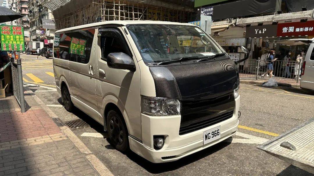 在油尖旺区,是观光购物游客最集中的地区,这里商铺送货的车大多数都是丰田海狮,不过我们可以看到,即便是送货的丰田海狮也很有态度啊,绞牙避震,大轮毂,碳纤维机盖甚至是斜出大炮都安排上了。在香港路上见到的许多车子都是经过了一些改装,就连埃尔法也一样。