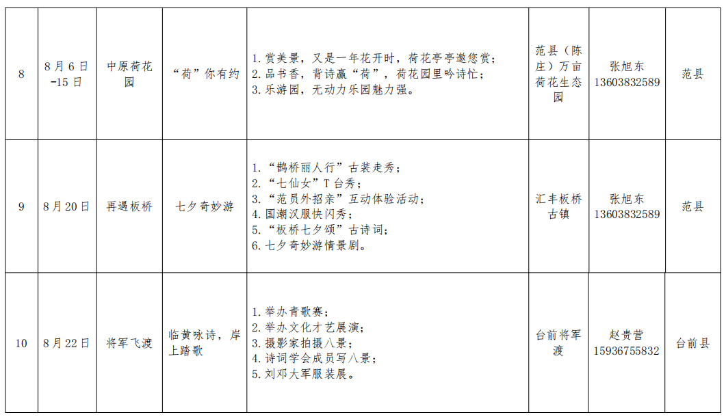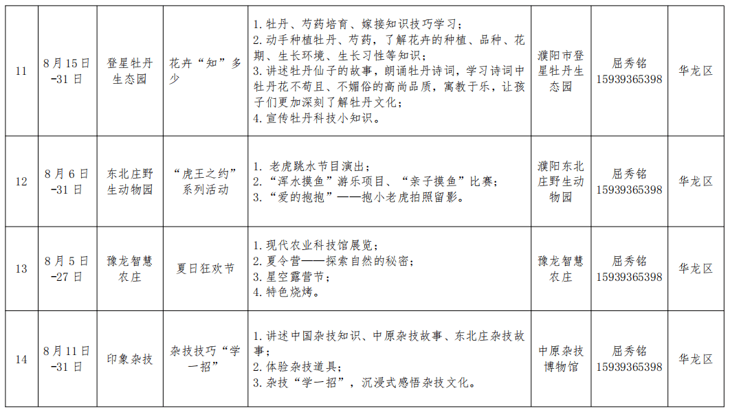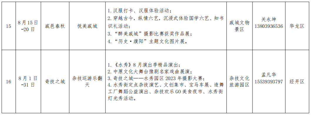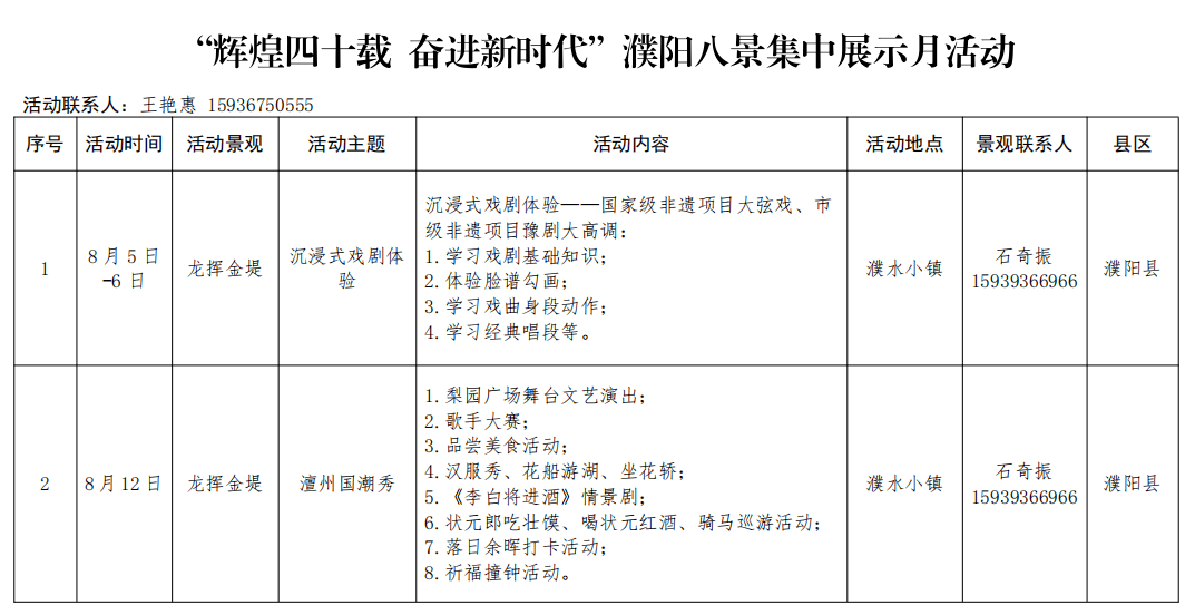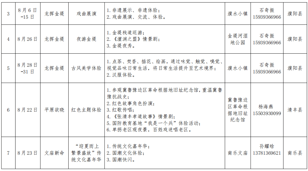 8月1日至31日活动期间,濮阳市将通过“濮阳八景”集中展示月活动,推动旅游景区提档升级,塑造濮阳市核心文旅品牌,形成区域联动机制,吸引外地游客前来观光、体验、消费,壮大濮阳市文旅产业,加快 濮阳市由国家历史文化名城向黄河流域文旅文创融合强市转变。