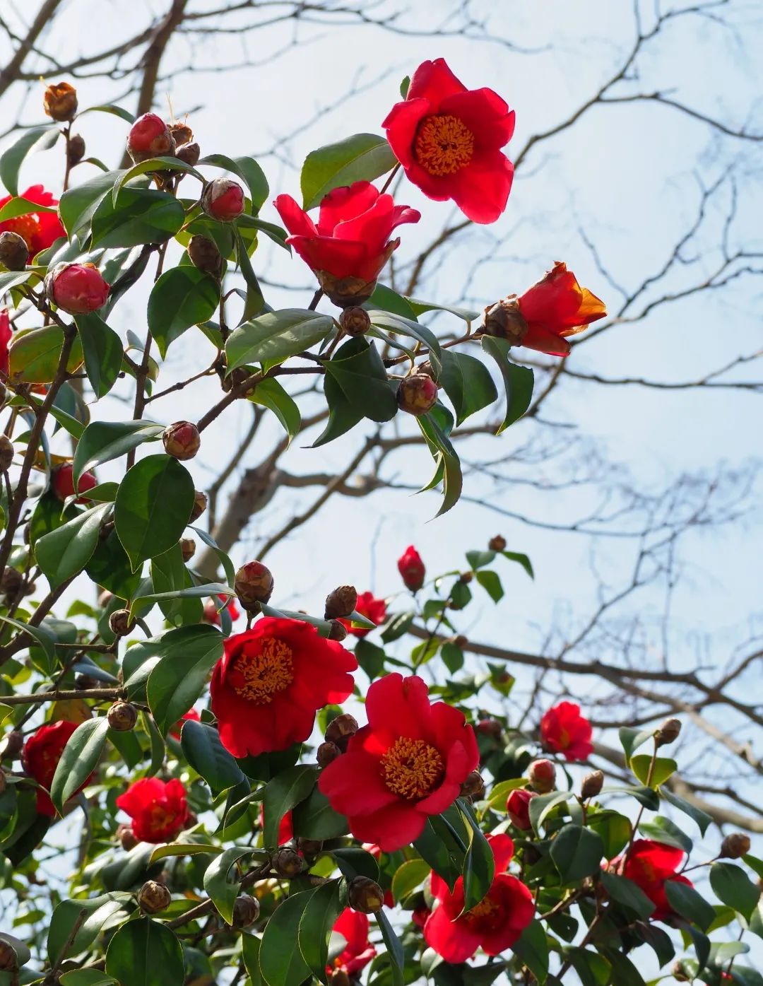 耐冬四季常绿,花期很长,从每年的十二月一直到次年四、五月份,隆冬时节也迎风怒放。