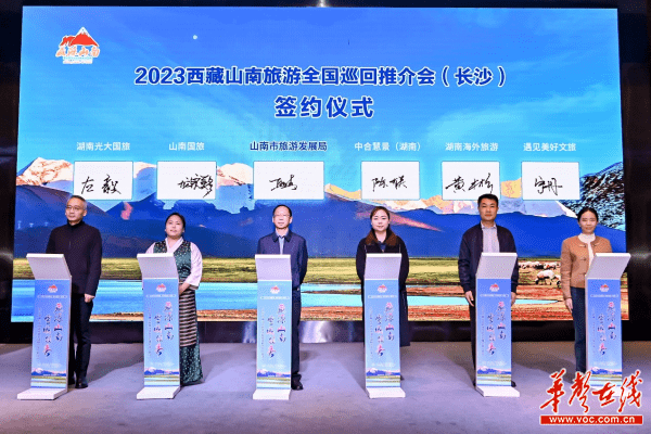 推介会上,山南市重点推介了旅游产业招商项目和冰雪圣湖之旅、山南边境红色之旅、雅江藏文化之旅三条旅游线路,贡嘎县、桑日县分别作重点旅游景区推介。山南市旅游发展局为中合慧景(湖南)文化旅游投资控股集团公司授牌“西藏自治区山南旅游联络处”,并与湖南光大国际旅行社等15家湖南组团社签订送客入藏合作意向。山南市幸福家园建设管理局与中南天使(湖南)文化传媒有限公司等5家文旅企业签订项目招商合作意向。