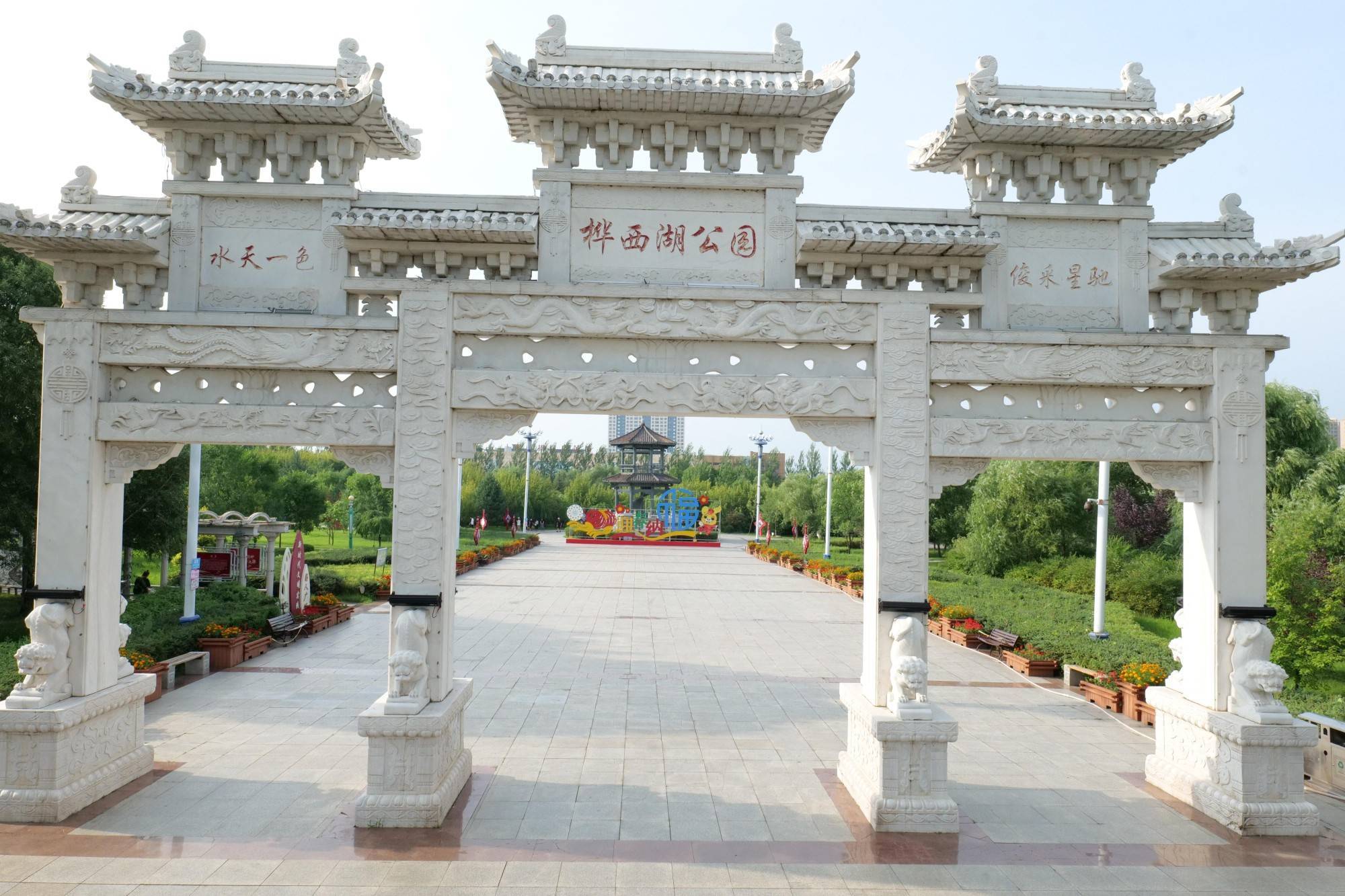 桦西湖公园白玉牌楼(央广网发 邵丽君 摄)
