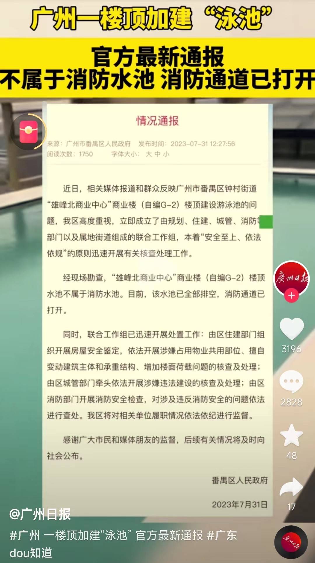 是游泳池还是消防水池?番禺官方通报一锤定音,不属于消防水池!