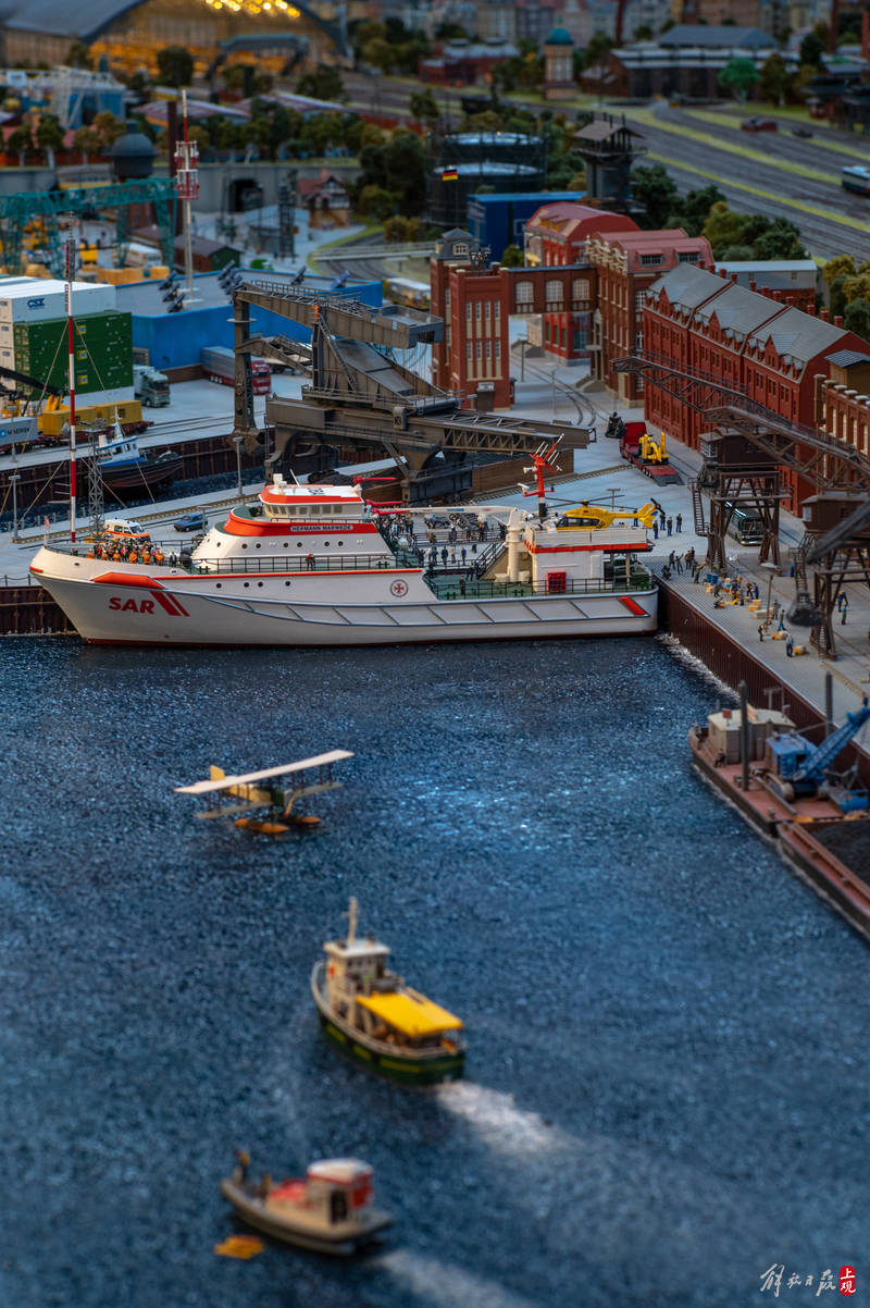 同类沙盘中,德国汉堡的微缩景观世界规模最大,展览面积4000方米,由一对德国的兄弟花20多年的时间慢慢建造起来,而上海的这座微缩世界,则是在经过四年时间绘制图纸之后,再由超过20名的专业工匠耗费9个月时间打造而成。参与其中的工匠中不乏景观设计、建筑模型搭建、火车铁轨电路设计铺设等细分领域的“行业大神”。