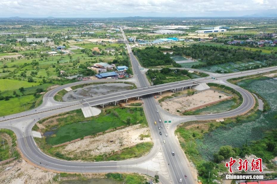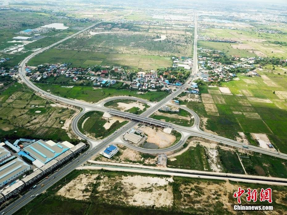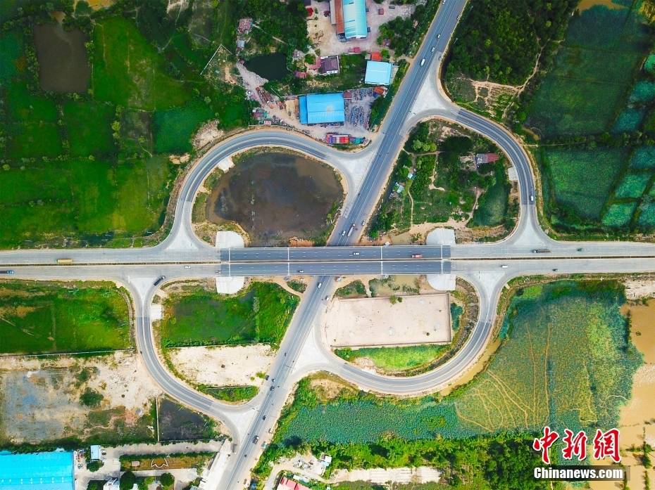 6月21日航拍的金边三环路与21号公路分离立交。(无人机照片)中新社发 朱子杰 摄