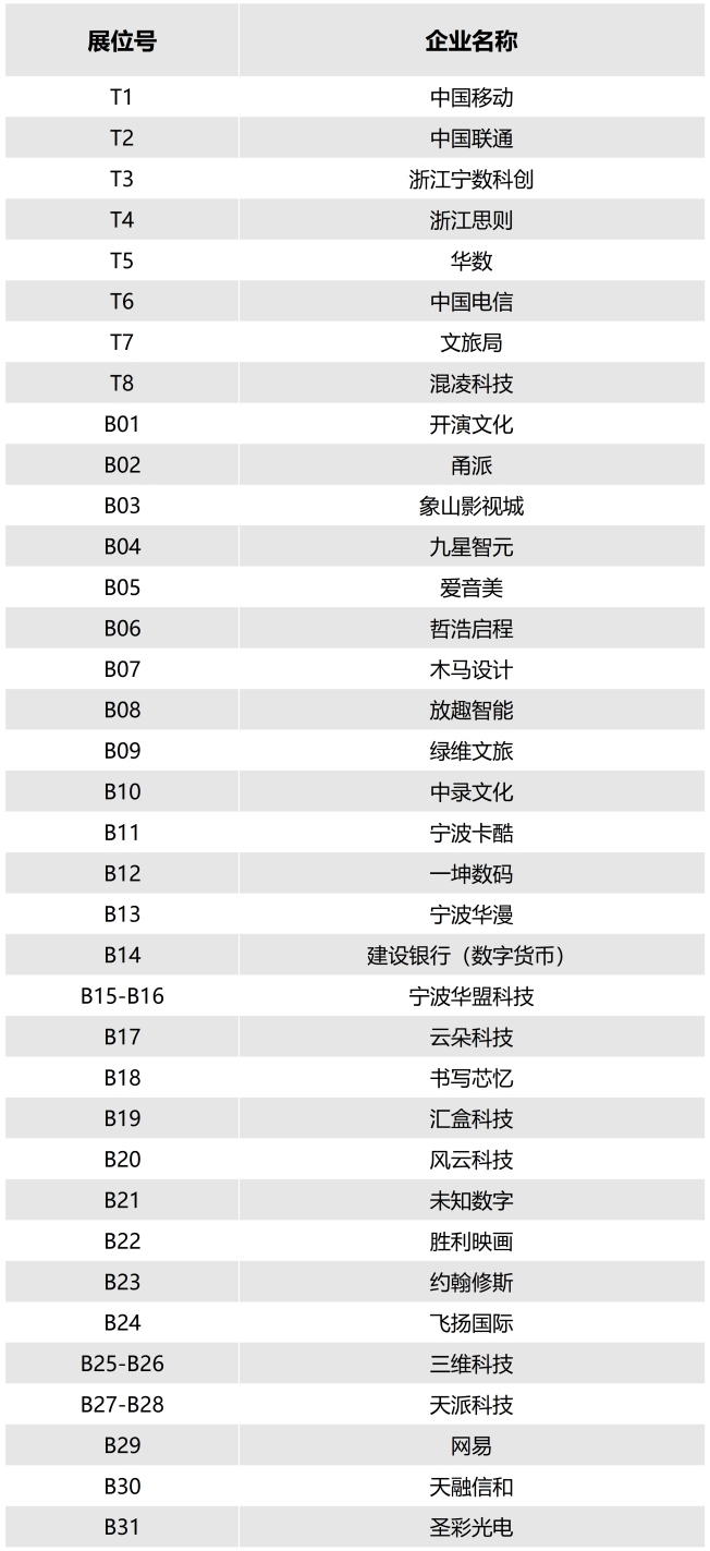 中国移动、中国电信、中国联通、华数、象山影视城、浙江宁数科创、甬派、混绫科技、网易、华为云、建设银行、天派科技、宁波华漫、三维科技、飞扬国际、约翰休斯、胜利映画、未知数字、风云科技、思则、开演集团等企业将亮相“2023宁波数字文旅消费活动”宁波数字文旅展,聚集裸眼3D、NFT数字藏品、数字虚拟人、人工智能、智慧城市、VR/AR/XR、文创IP、视觉特效、5G、智慧景区等数字技术内容,集中展示热门领域应用的前沿技术及顶尖新品!