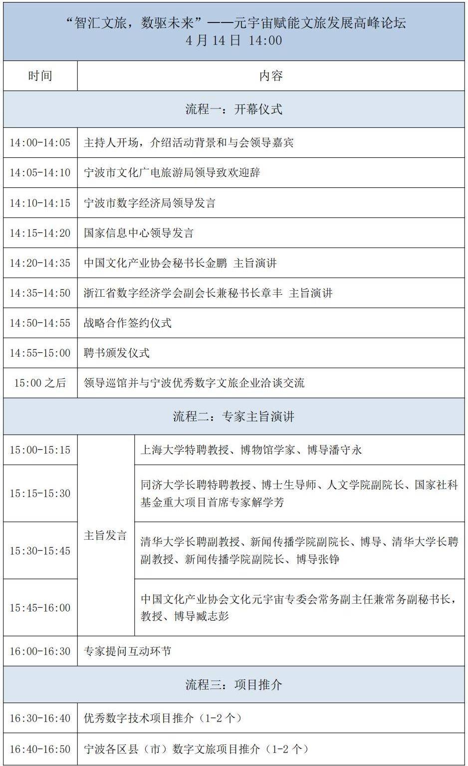 同期还将举行“智汇文旅,数驱未来”——元宇宙赋能文旅发展高峰论坛,中国文化产业协会秘书长金鹏、浙江省数字经济学会副会长兼秘书长章丰、上海大学特聘教授、博导潘守永、同济大学长聘特聘教授、博士生导师、人文学院副院长、国家社科基金重大项目首席专家解学芳、清华大学长聘副教授、新闻传播学院副院长、博导张铮、中国文化产业协会文化元宇宙专委会常务副主任兼常务副秘书长,教授、博导臧志彭将分享行业权威资讯、观点并进行政策解读。