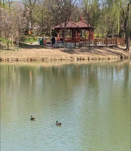 南园这边还有一个野鸭湖锦鲤成群,结队的绿头鸭们自由自在地游曳着,适合孩子们带好馒头来此投喂。