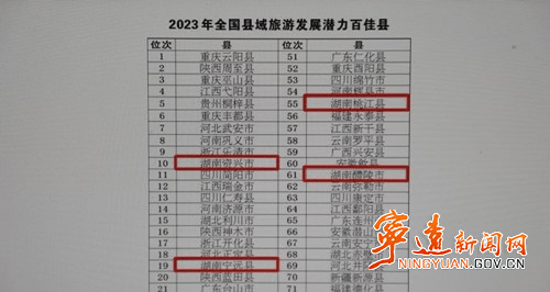 近日,全国县域旅游研究课题组、华夏佰强旅游咨询中心联合发布第五届全国县域旅游研究成果《全国县域旅游高质量发展研究报告2023》暨“2023年全国县域旅游综合实力百强县”“2023年全国县域旅游发展潜力百佳县”名单。宁远入选“2023年全国县域旅游发展潜力百佳县”,为全市唯一。