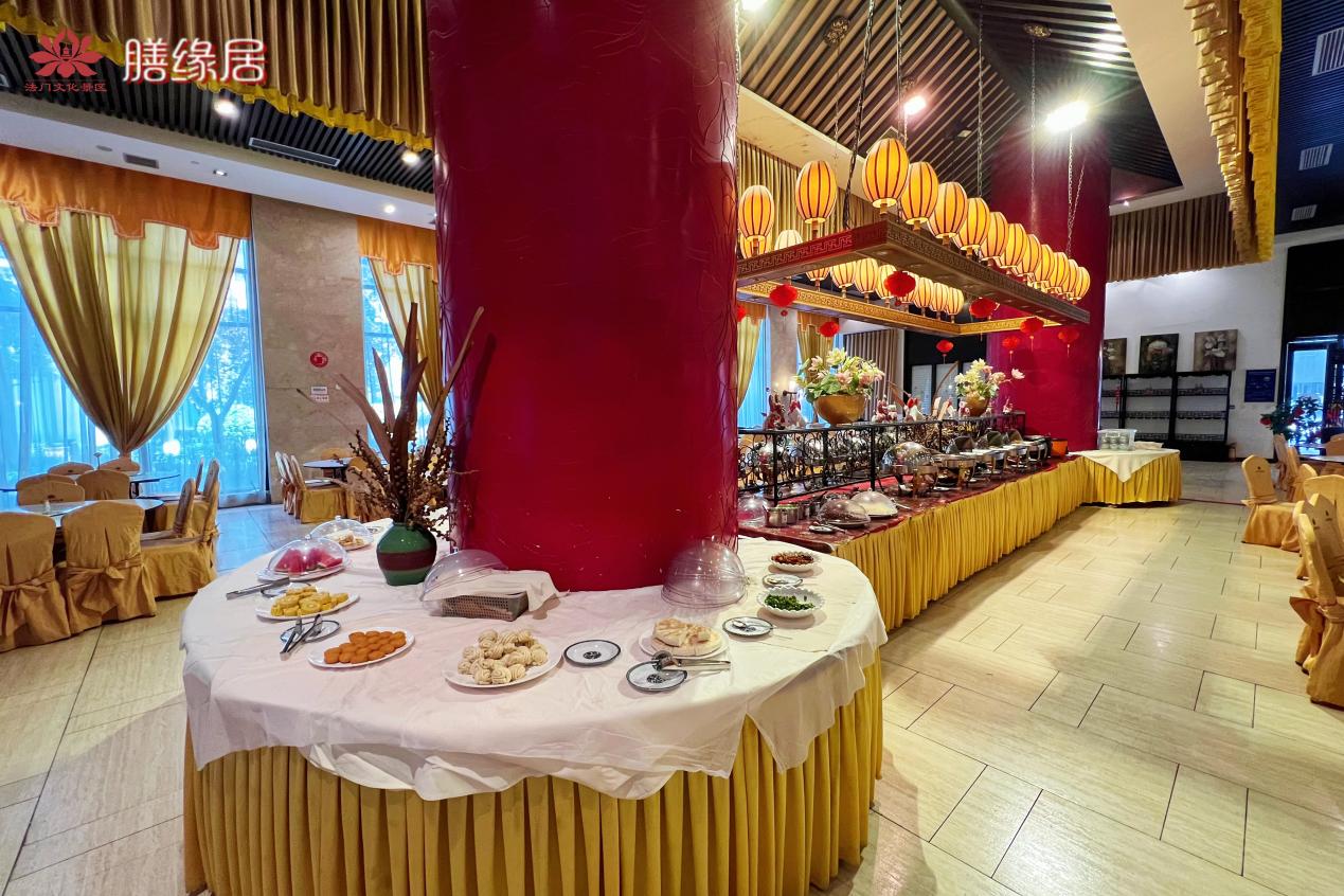 在膳缘居餐厅,景区为您精心准备了美味可口的法门素食,在这里您可以享受到素斋大师为您带来具有新意的特色素食和品种丰富的素斋自助餐。