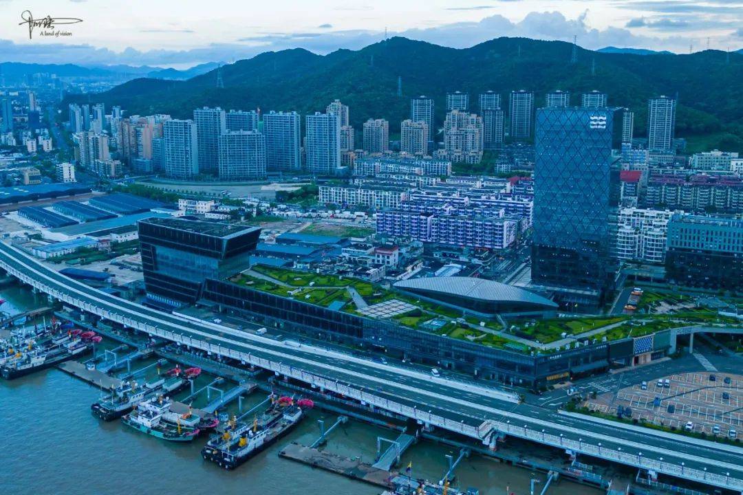 遗憾的是这一带都是“禁飞区”,不让航拍。所以比较偏执的我沿着滨港路一边走一边测试,直至抵达“中国舟山国际水产城”附近,才接收到无人机可以起飞的提示。然后环顾四周,发现这里虽然已经是沿海立交桥上,旁边却就有一个大型停车场,周边各种商铺酒店林立,甚至还有个“海滨电影院”,显然平时也是沈家门比较繁华的去处。