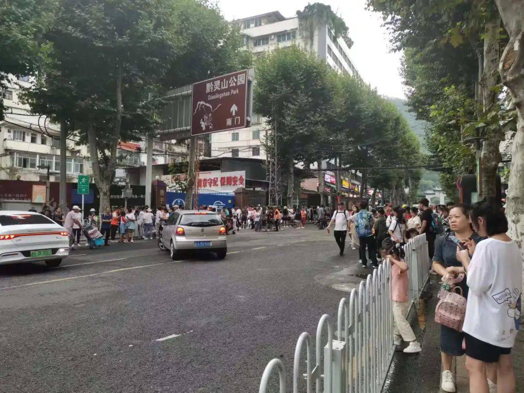 8月1日上午10时许,虽然已过交通早高峰,但记者在黔灵山公园门口看到,这里人山人海,路人排队前行,步速难以提高;部分准备进入黔灵山公园停车场的车辆,排着队慢慢等待;附近的小道上也全是行人来来往往。周边的枣山路双向车辆通行较为缓慢,北京路往枣山路口车队尾车在瑞北下拉槽内。