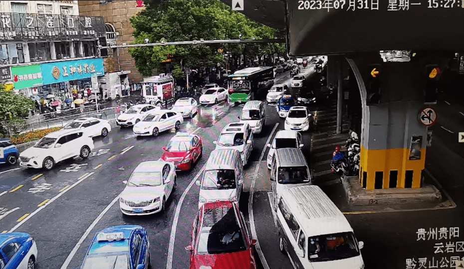 记者通过贵阳交警850指挥中心大屏观察发现,就算天公不作美,阵雨不断,也没浇灭大家前往黔灵山公园游玩的兴致,周边道路依旧车水马龙。