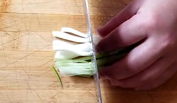 2、再把准备好的葱白切成葱段,大葱叶切成葱花,生姜切成片,大蒜切成片,全部切好之后放在盘子里面。