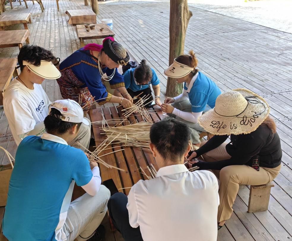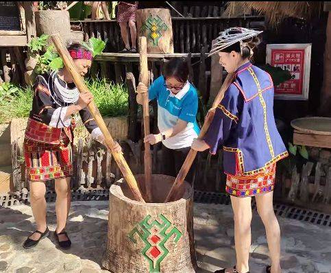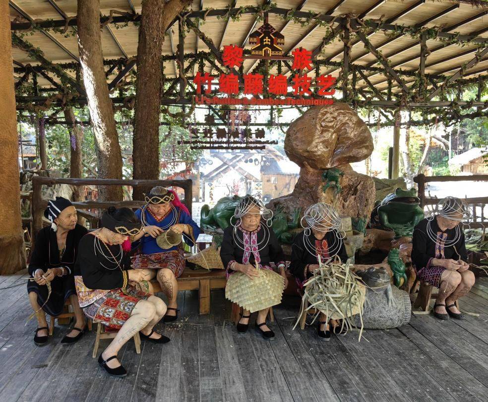 黎编是一种传统的编织技艺,我们学习了如何编织,也亲身体验了打米、目睹了爬槟榔树等乡村生活场景,加深了对当地文化的体验,感受了黎苗族人的智慧和创造力。