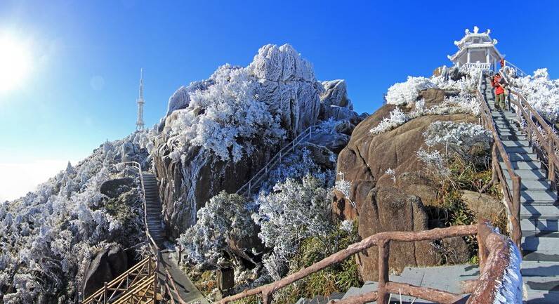 绵延山脉里,珍稀动植物和古木奇树竞秀,素有“中土蓬莱第一山”之称。登临之,春可看杜鹃花海,夏观松竹吐绿,秋赏红叶铺径,冬览云海雾凇。散落山中的灵鹫岩、永安岩、弥勒洞等千年古刹,引人怀古。