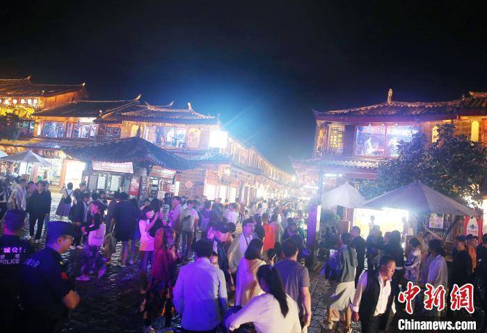 图为游客夜间游览丽江古城。 黄兴鸿 摄