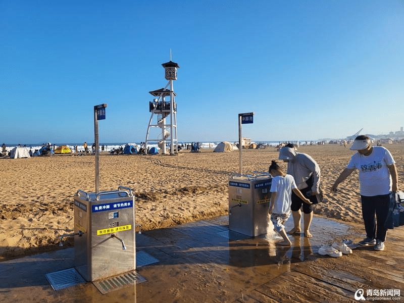 “我们是第一次来青岛。”来自湖南的游客表示,“我们在沙滩游玩踩了一脚沙子。不知道原来这里还可以免费冲脚,真的挺方便!”现在的免费冲脚设施,同样需要扫描二维码进行操作,即便这样游客也表现出了认可态度。