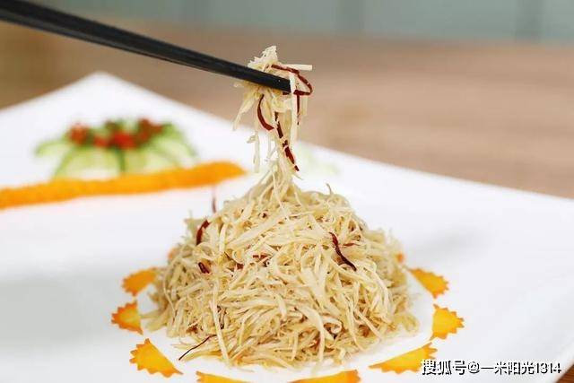 发丝百叶又名发丝牛百叶,始创于19世纪20年代,是一道湖南名菜。发丝百叶以牛百叶切丝急火爆炒而成。成菜后,色泽白净,形如发丝,质地脆嫩,集咸、鲜、辣、酸于一体。
