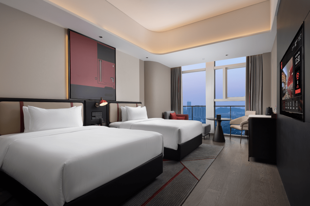 房间内“舒达”床垫、“戴森”吹风机,意大利ACCA KAPPA洗护用品等各类设施,一应俱全,于细节处打造舒适云中秘境。同时,广州南站丽芮酒店以科技赋能,AI智能语音控制系统、机器人无接触式配送,为每位宾客缔造难忘入住体验。