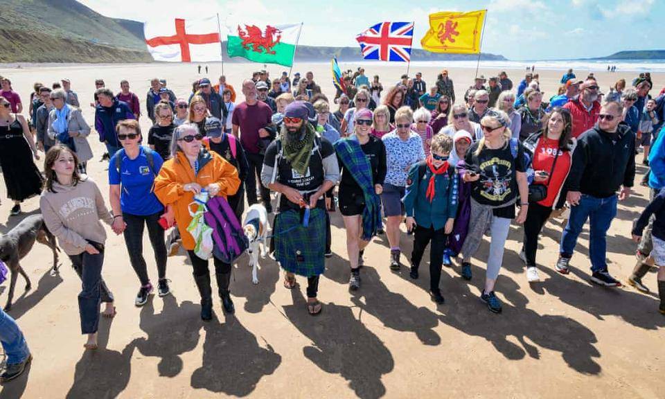7月29日,英国人克里斯·路易斯回到了位于英国威尔士南部高尔半岛的兰根尼斯海滩——6年前,饱受病症困扰、差点无家可归的他,穿着借来的鞋子从这里出发,开启环英国海岸线徒步之旅;6年后,当他回到这里时,路易斯不再形单影只,伴侣、儿子和旅途中收养的宠物狗伴其左右。路易斯这场史诗般的徒步,总路程约3万公里。