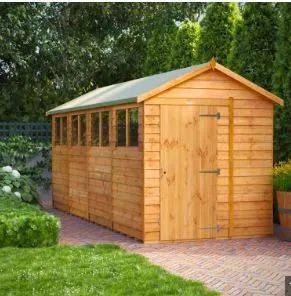 那就没有办法了。我们也不想去其他地方寻找了,就找了一家新西兰老牌花园小屋公司,但是这次没有选择木屋,而是选择了彩钢,彩钢屋的造型跟我们的房子和搭调,都很现代,有门窗,里面还有工作台和铺设了木地板,放花园工具是绰绰有余的,面积大概7个平方米。
