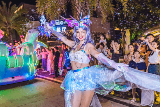 夜经济正成为提升城市活力,拉动城市发展的新引擎。三亚海昌梦幻海洋不夜城把握景区夜游优势,在暑期全面升级演艺产品,推出“夏日定制版花车巡游”、老少皆宜的“欢乐剧场大”等100余场精彩演艺,从傍晚到夜间,不间断轮番上演。