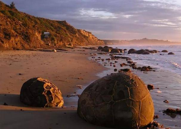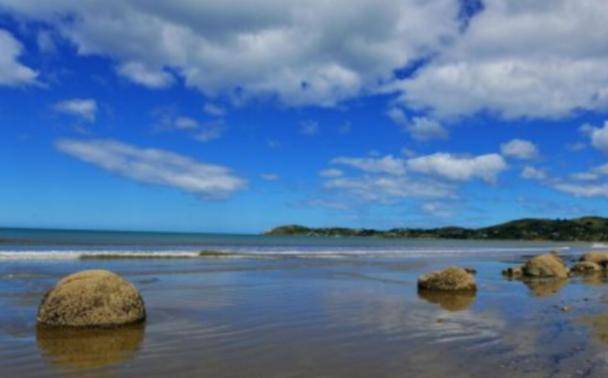 只不过,大家来到这个地方可不一样。这个神秘的海滩发现了“巨石蛋”,很多人都被这神秘的石头所吸引,来到这个位于新西兰南边的小镇------摩拉基。这是是一个港口城市,同时也是一个著名的海景城市,当地的经济还是以渔业为主,它出名的地方在于海边的大圆石,一个个非常巨大而又规整的圆石,错落有致的排列着,经过若干年的腐蚀,有些已经变形了,不过还能模糊着看出一些轮廓。还有一些石头已经突破了形态的束缚,绽放了自己,像个大花苞一样。