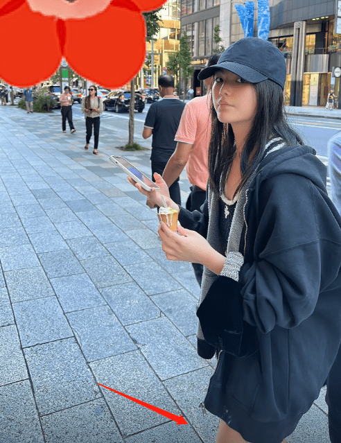 她一手拿手机,一手拿冰淇淋,穿着黑色的外套,内搭香奶奶的连衣裙,富贵尽显却低调。久未露面的她,身高也长高了不少,身材更是变得纤细修长。