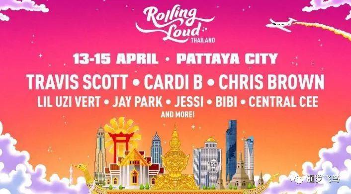 其中第一个活动,也可能是最具标志性的一个,肯定是终极嘻哈音乐节“Rolling Loud Thailand”。这场活动将从4月13日持续到15日,汇集了来自美国、加拿大、亚洲等地的一系列享誉世界的嘻哈艺人,包括Travis Scott、Cardi B、Chris Brown、Jay Park、BiBi、Jessi和Big Naughty等等。