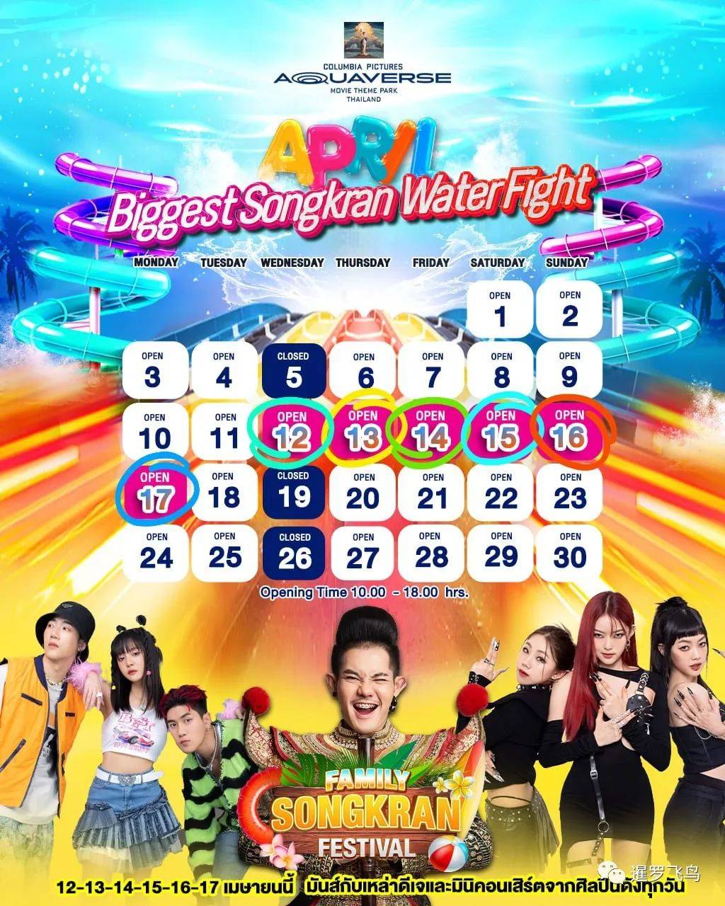 有促销活动,包括泼水节门票、VIP 套餐和免费小屋、食品和饮料。体验无限水上活动、每日泡沫派对,并有机会赢取命运之轮的奖品。此外,3 岁以下儿童免费入场!