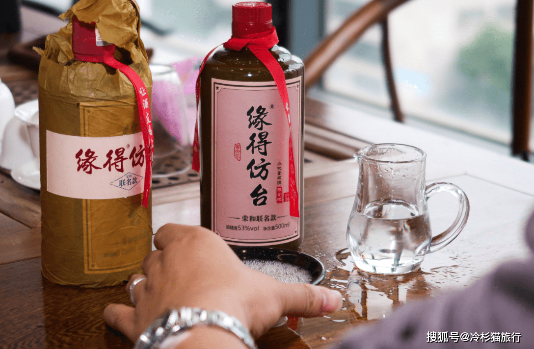 另一瓶酒是缘得荣和联名款。这款酒是三人在昆明时经常喝的一款,它起源于茅台镇,和茅台镇的酱酒一样,味道醇厚,酱香浓郁,入口非常柔和。