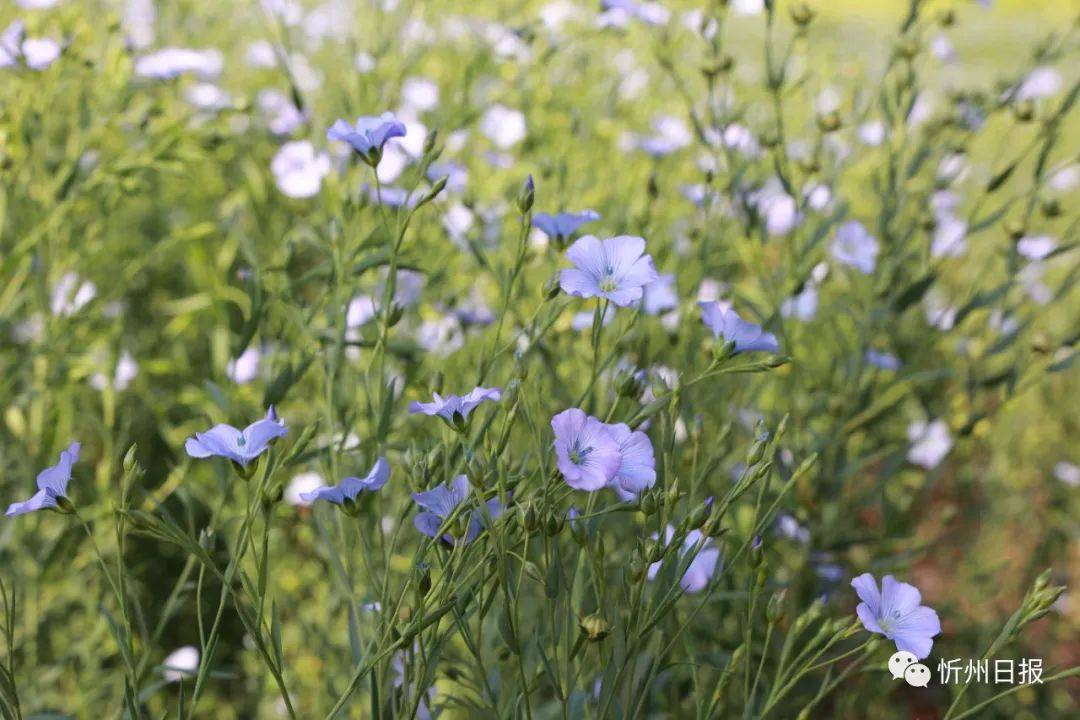 神池县以出产胡麻而著称,是中国亚麻油籽之乡,尤其是烈堡乡海拔较高,土壤肥沃,是胡麻生长的绝佳环境。每年盛夏,蓝色的胡麻花次第开放,像一只只蝴蝶飞舞在绿色海洋,绘出了一幅浓墨重彩田园山水画。