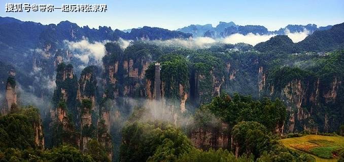 袁家界地处张家界世界自然遗产的核心,海拔1000余米,四周陡壁悬崖,矗立在武陵山区之中,恰似乎地突起高台。乘坐高达326米的百龙天梯,不到两分钟,袁家界景区便赫然展现在面前。