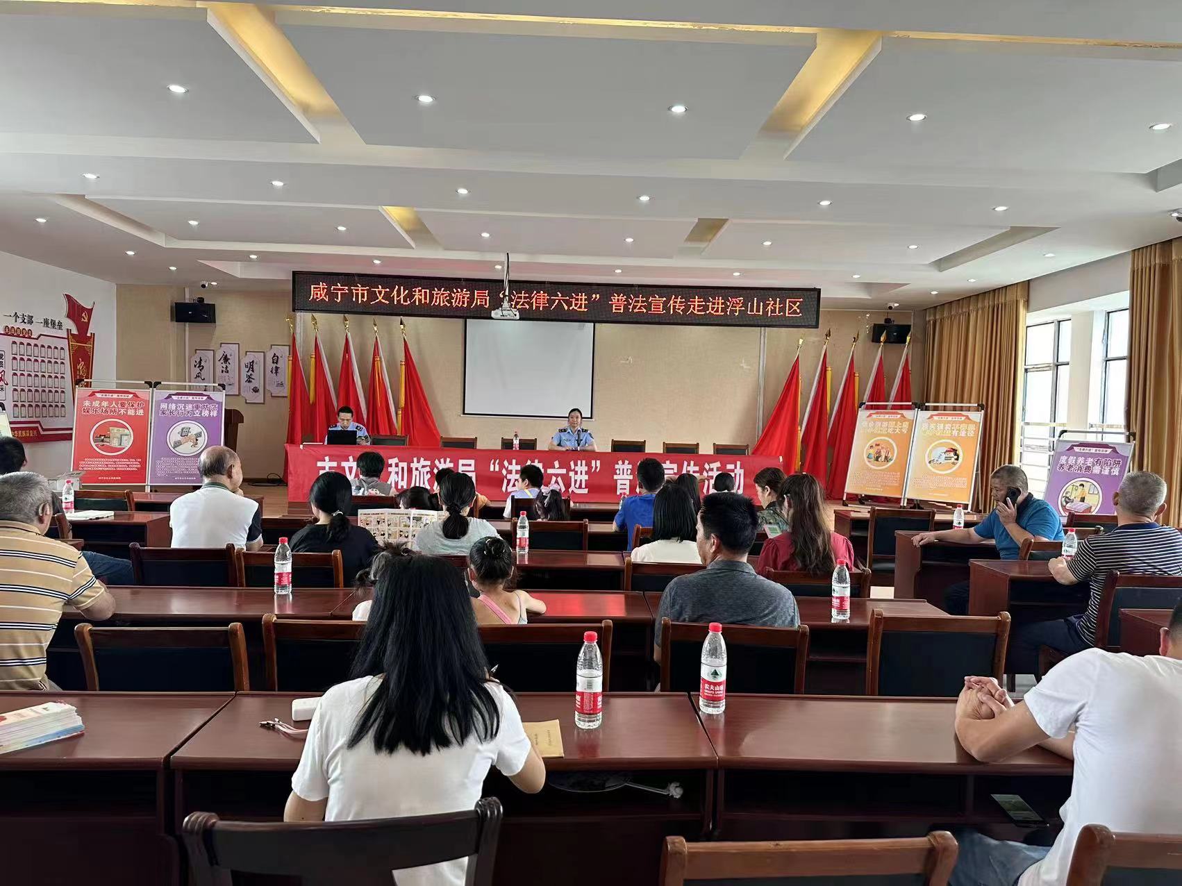 为全面深入贯彻落实“八五”普法规划,进一步提高法治社会建设水平,结合文旅部门实际,7月以来,市文化和旅游局面向来咸旅游、城区居民,以法治宣传活动、举办普法讲座、播放法治宣传电影等形式,积极推进法律进机关、进乡村、进社区、进学校、进企业、进单位“法律六进”普法宣传月活动,先后已在浮山社区、书台社区、三江森林温泉等地开展宣传活动,本次活动是“法律六进”活动的第四站。