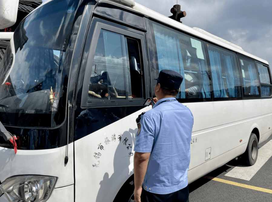 暑期也是旅行团的出行高峰,联合检查组在鼋头渚景区和三国水浒景区门口随机抽查了旅游大巴,认真核查了旅行社是否租用符合要求的旅游客运车辆、旅游客运车辆线路标志牌是否合法有效、驾驶员是否具备从业资格并随车携带《安全例检单》等情况。