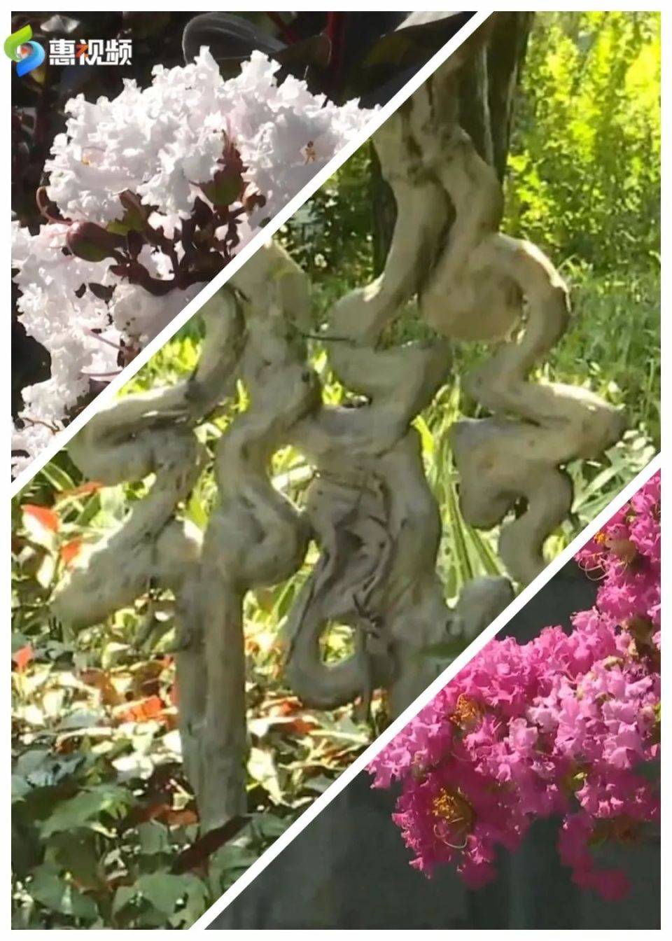 紫薇园给炎热的夏季增添了一抹靓丽的色彩。紫薇花的花期正好在6~9月,树枝优美,树干光滑洁净,花色艳丽,是观花、观干、观根的盆景良材。园区内收集了多种紫薇造型,包括花篮式、寿字式、禄字式、花瓶式、门框式等。