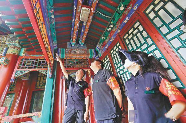 8月2日,北海公园文物巡查员对园内古建等进行检查。据北京日报