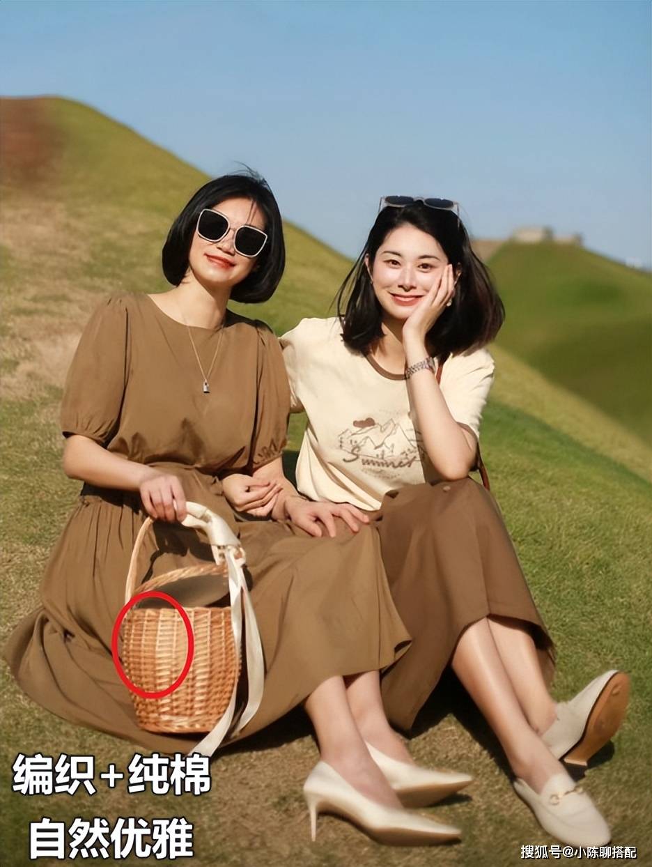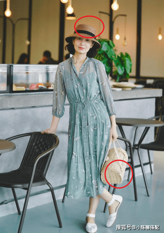 一件衣服又要雅致又要时髦是很难同时做到的,必须借助一些配件。如图,一条碎花裙,若是想要穿出御姐氛围,搭配一双挺括的皮鞋+线条流畅硬度高的包包,会让人看上去精致又冷艳。但若是配件钝感较强,又偏向自然,整体就成了温婉淡雅。