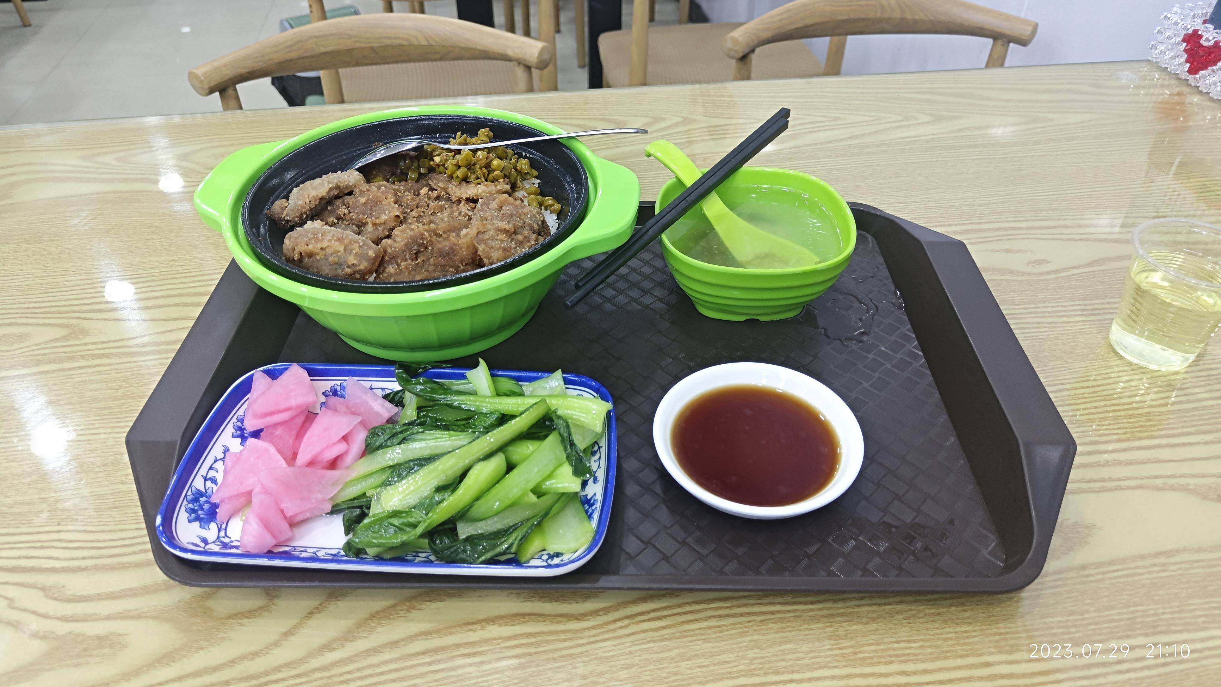点了一份煲仔饭,18元,配有一盘素菜,一小碗淡汤,一碟醋汤,感觉非常不错的。