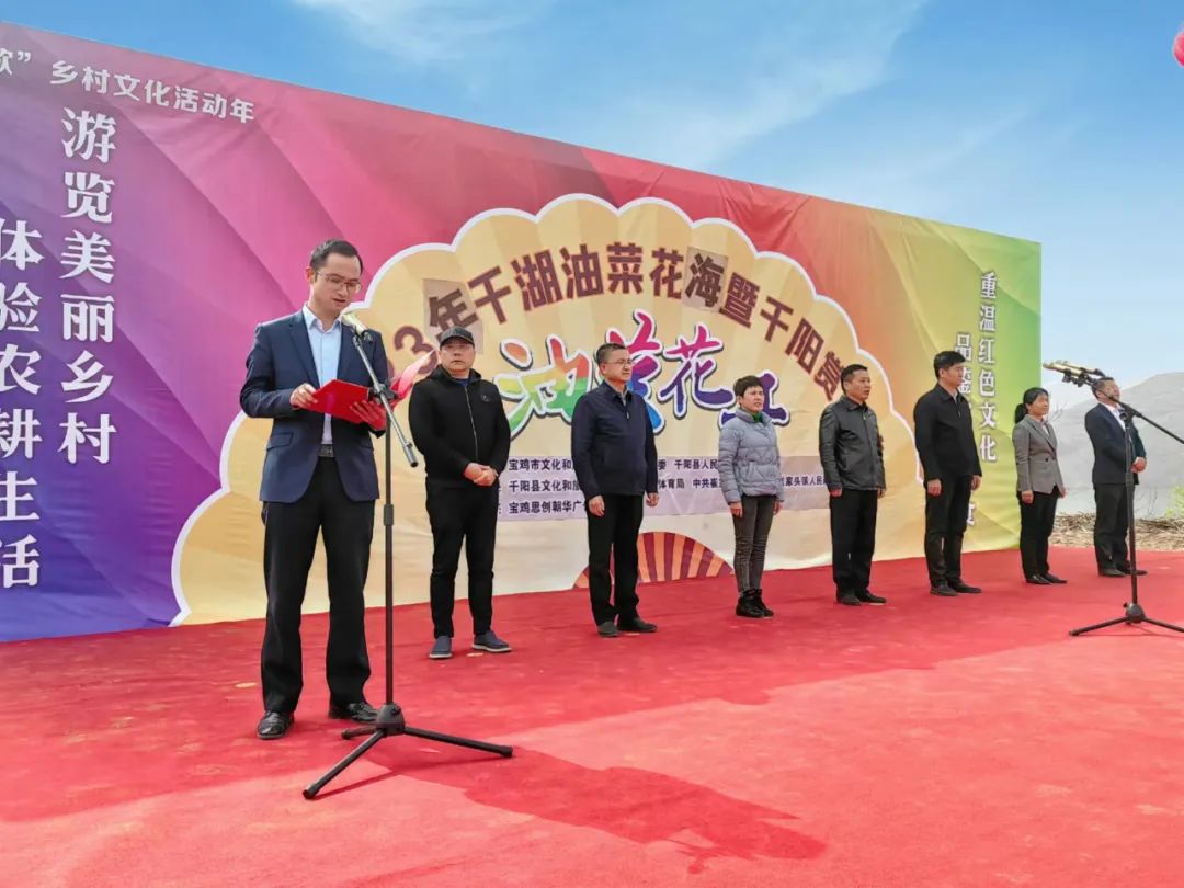 开幕式上,千阳县委常委、统战部长赵选民致欢迎辞,崔家头镇负责人全面介绍了油菜花海建设情况,县文旅局负责人发布了千阳县2023年文化旅游活动信息,对摄影、短视频大赛莸奖作者版了奖,开展了乡村振兴捐赠活动。市文化和旅游局党组成员、二级调研员王光友讲话并宣布 赏花节 开幕。