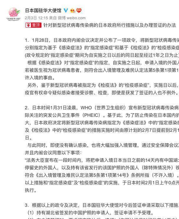 日本国驻华大使馆对今后签证申请采取以下措施: