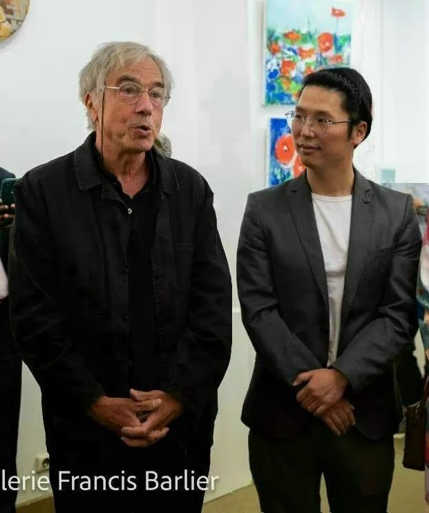 巴黎雷欧与法国美协主席雷米·艾融在“夏日绘彩”画展上交谈