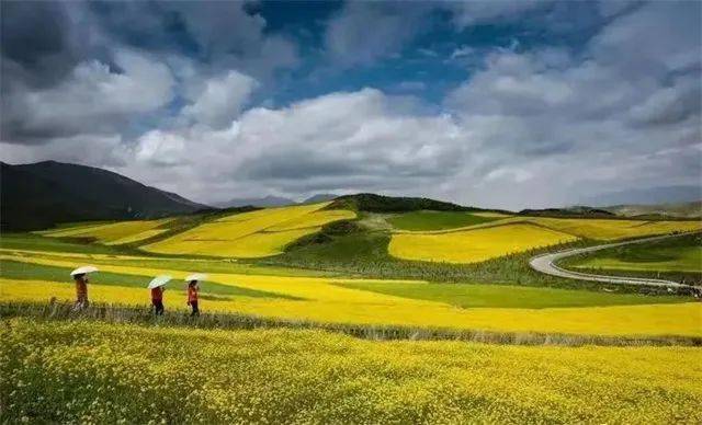 盛夏时节,在湛蓝辽阔的天空下,武威古浪古丰镇柳条河油菜花基地里金灿灿的油菜花迎风绽放,在青绿的群山间一片片金黄格外显眼。油菜花田与群山交相辉映,形成了一幅秀美的画卷,带您步入诗的海洋,拥您进入甜美梦乡。古浪客运中心有一班专为游客观赏油菜花而精心准备的“开往夏日清凉的班车”,每天早晨八点,坐上这班同油菜花一样“金灿灿”的班车,就能直达油菜花海。在下车的那一刻,清凉的微风拂过,阵阵清新淡雅的花香扑鼻而来,让人不禁感叹眼前这自带香气的美景!