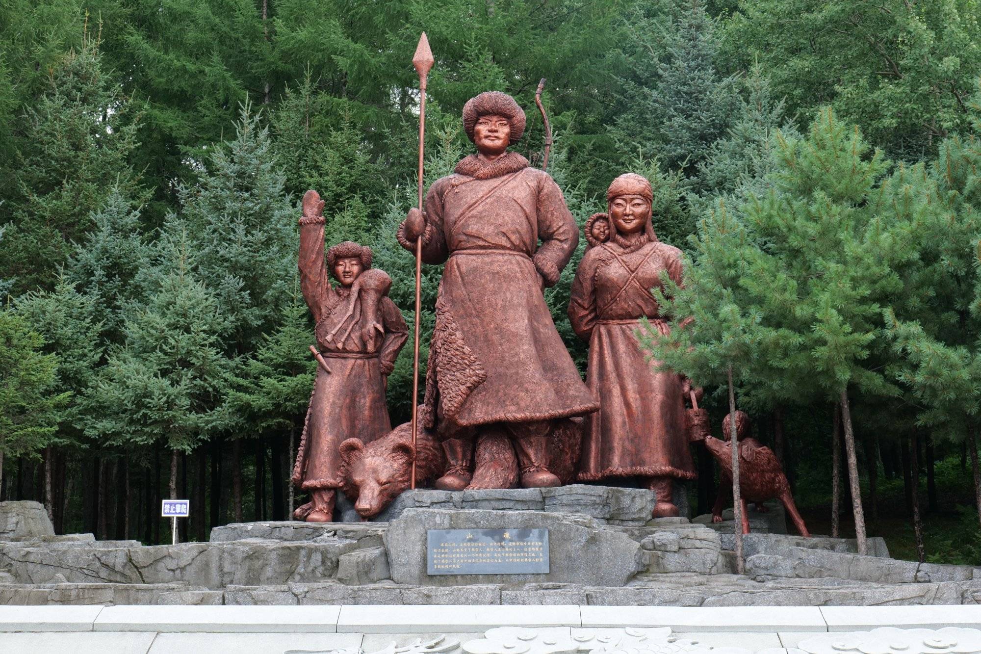 再现赫哲族狩猎文化的山魂雕塑(央广网发 邵丽君 摄)