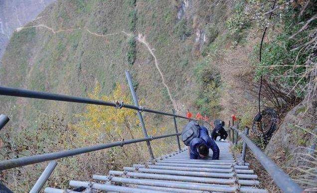 “悬崖村”位于四川凉山,村寨坐落在1400米-1600米的山坳之中,从山底到山顶的坡度非常陡峭。村民们要去县城买东西需要爬落差近800米左右的悬崖,非常危险。后来经过人们的募资捐款,终于为“悬崖村”修建了一条通往山顶的钢梯路。