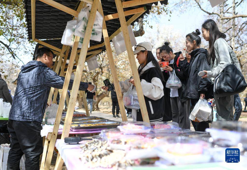 4月7日,游客在南长滩村赏花休闲(无人机照片)。