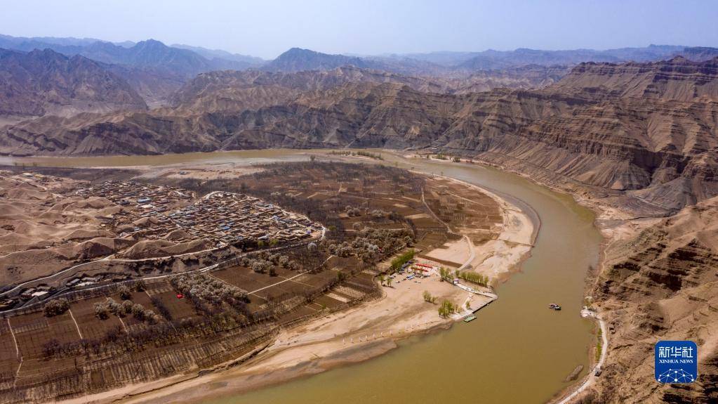这是4月7日拍摄的宁夏中卫市迎水桥镇南长滩村(无人机照片)。